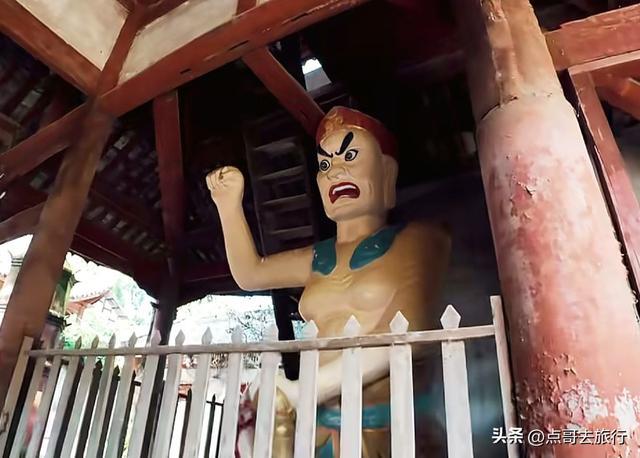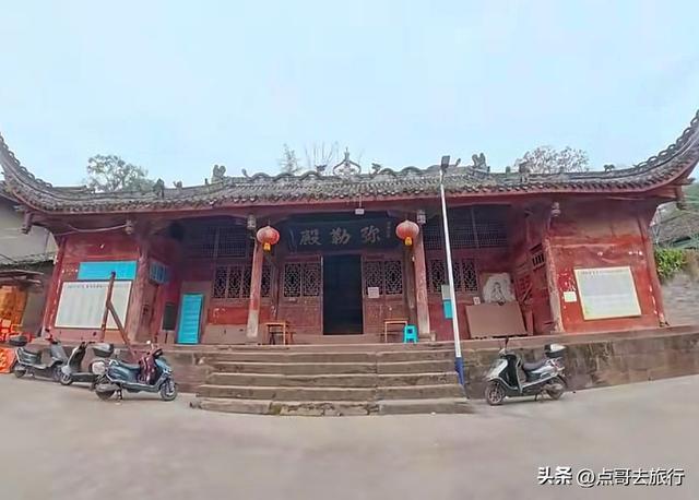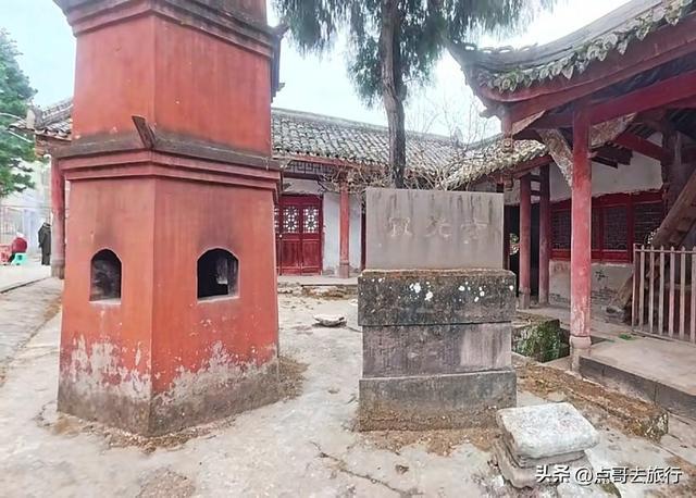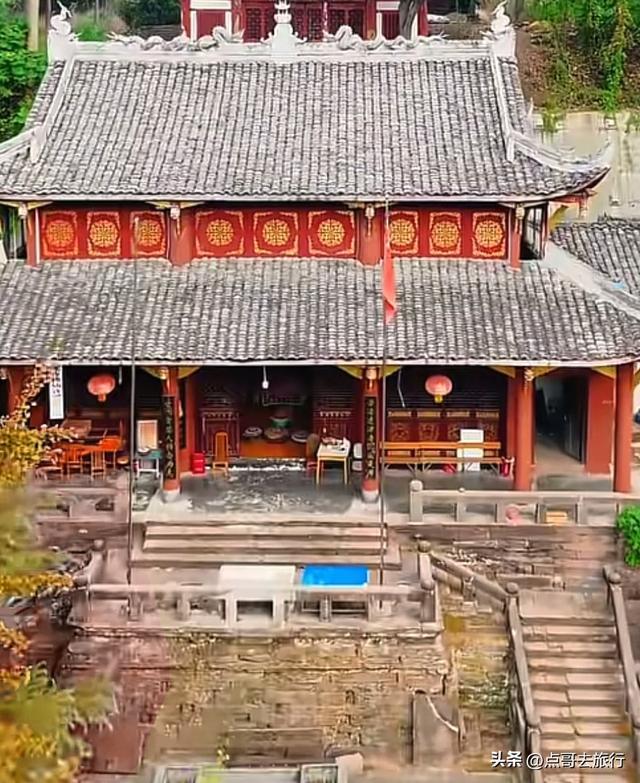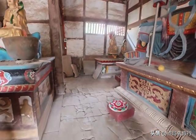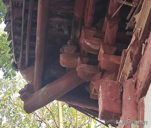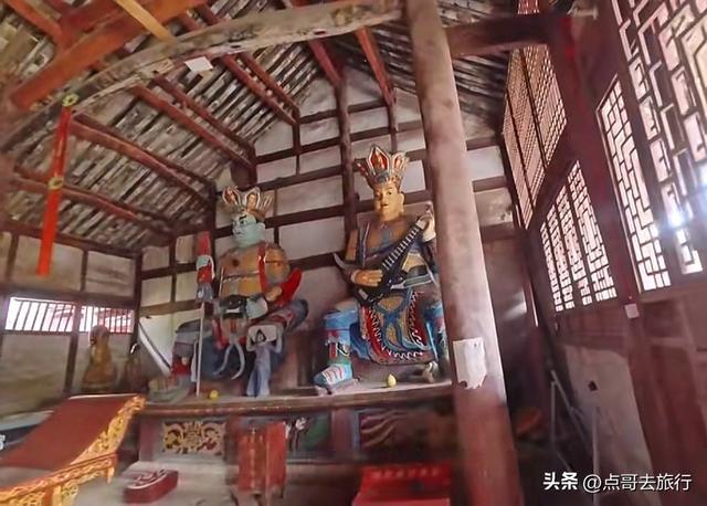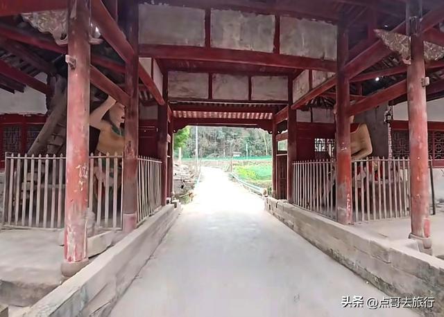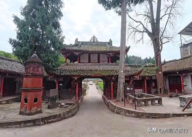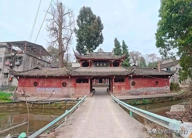 从古柏乡的老街穿出来,就进了寺庙,感觉怪怪的,总觉得有点不对劲,仔细看了看才发现了其中的缘由。一条乡村公路从魁星楼下穿过,把寺庙和魁星楼分成了两半,这在其他寺庙中是见不到的。当地人赶场、下田干农活,都从这楼门下经过。魁星楼其实就是山门,建于清代道光年间的建筑,共有两层,重檐歇山式顶,青瓦飞檐,没有华丽,却透着古朴。山门两边是厢房,哼哈二将位于其中,威武地守着山门,往来的行人都从他们的眼皮底下经过。二楼供奉着魁星点斗和灵官菩萨。楼前有座桥,横跨于古井小溪上,虽历经岁月侵蚀,却依旧坚固。我静站山门前,看着山门和斑驳的墙壁,一股历史的厚重感扑面而来,仿佛瞬间穿回了千年之前。