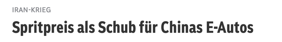 德国《经济周刊》看得很透彻,这场中东的战争,从长远来看,恰恰印证了中国坚定不移走向电气化工业强国的道路,是多么有远见。
